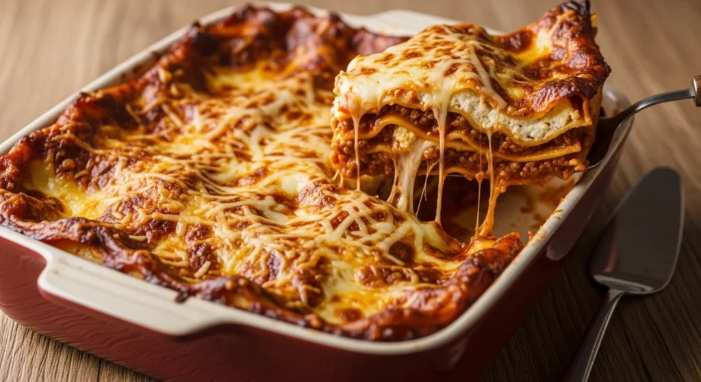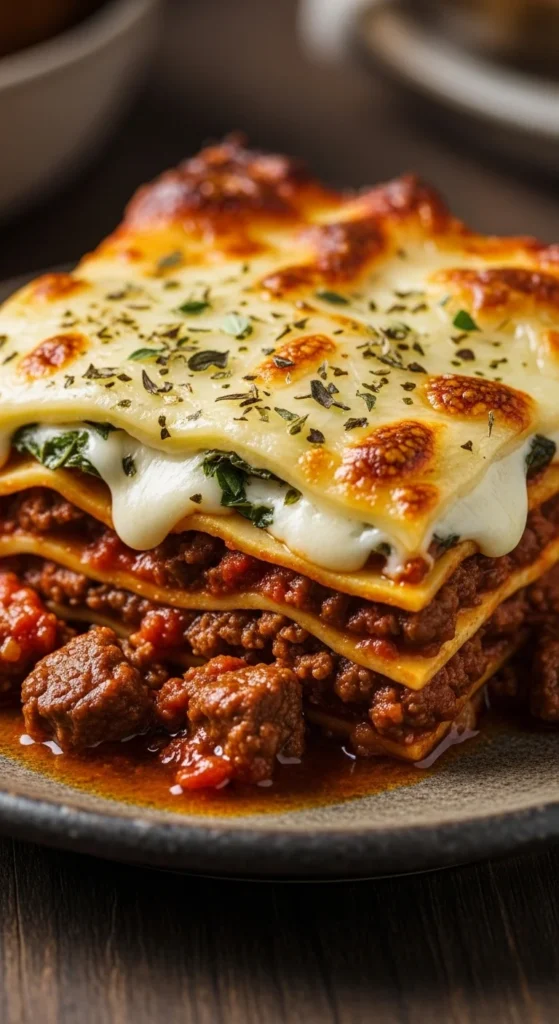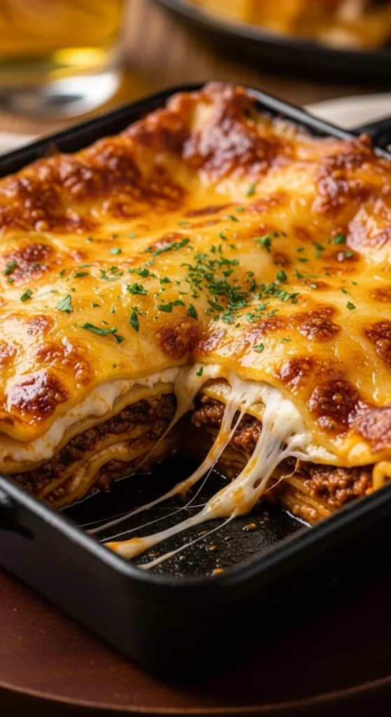 A timeless version with rich beef sauce, creamy cheese filling, and perfectly layered pasta that brings deep comfort in every bite.