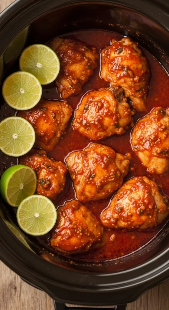 This smoky and slightly spicy chipotle lime chicken is ideal for tacos, burrito bowls, and wraps. The slow cooking process makes it easy to shred, while the lime juice brightens the flavor.
