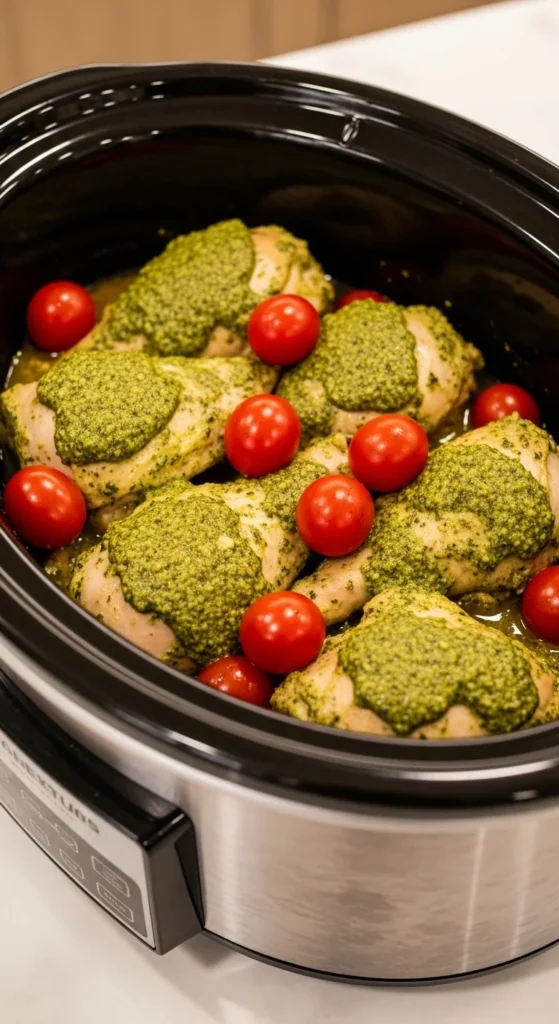 This pesto chicken is bright and herbaceous with minimal prep. The sauce keeps the meat juicy and pairs well with pasta or crusty bread.
