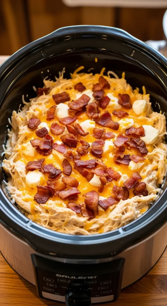 This rich and comforting favorite blends ranch seasoning, cream cheese, and crispy bacon into tender shredded chicken that’s packed with flavor. It’s perfect for sandwiches, sliders, or stuffing into baked potatoes. Families love it, and it reheats beautifully.