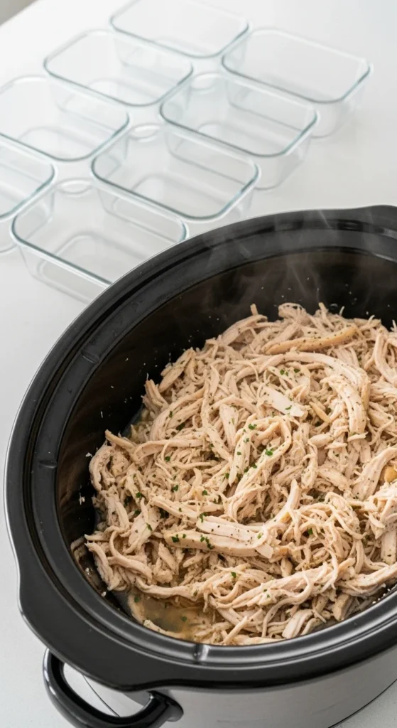 This basic shredded chicken is perfect for weekly meal prep and works across salads, wraps, tacos, and bowls.