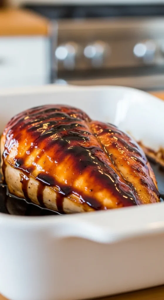 Balsamic vinegar brings gentle sweetness that bakes into the chicken beautifully. The glaze thickens in the oven and keeps the meat moist. This recipe feels cozy and balanced. Prep is quick and simple. Great for quiet weeknights. Pairs easily with vegetables.