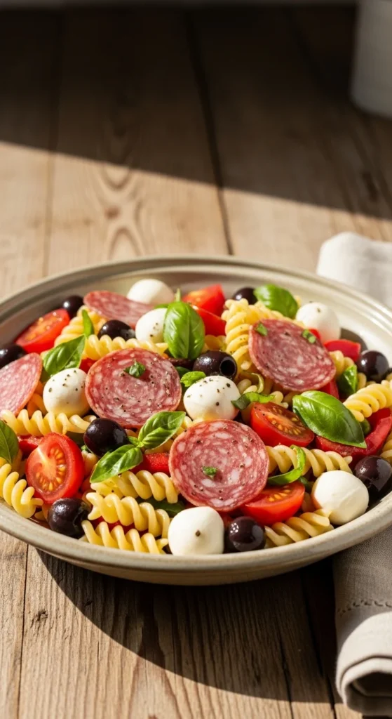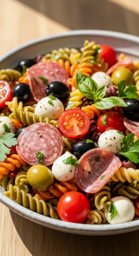 This antipasto pasta salad delivers bold Italian flavors with cured meats, cheese, and briny elements that make it perfect for gatherings.