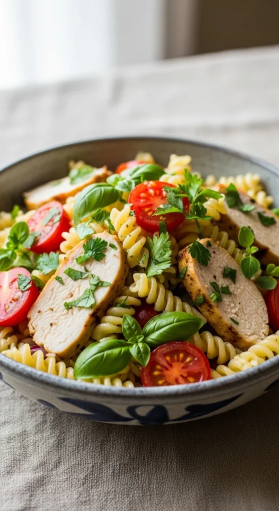 This chicken pasta salad is hearty, balanced, and perfect for turning a simple side into a satisfying meal. Tender chicken pairs beautifully with fresh vegetables and pasta, making it ideal for lunches, meal prep, or quick dinners that stay flavorful after chilling.