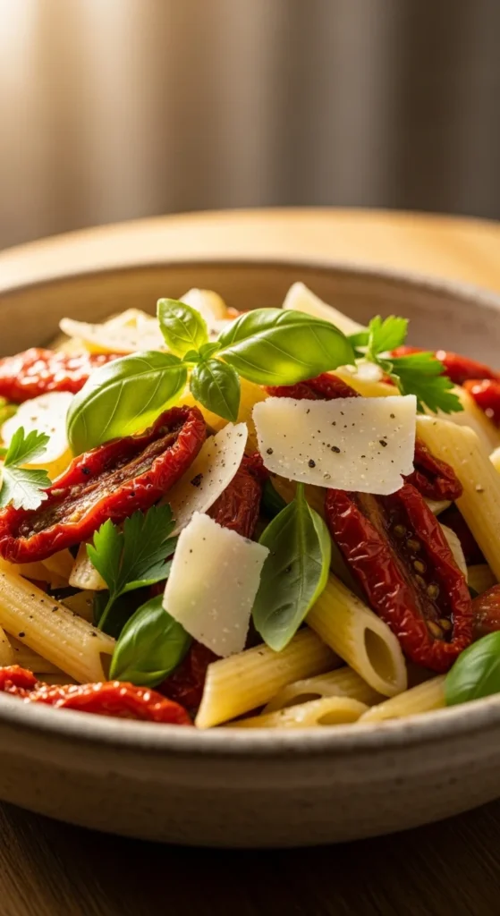 This pasta salad offers bold flavor from sun-dried tomatoes that add richness and depth without extra effort.