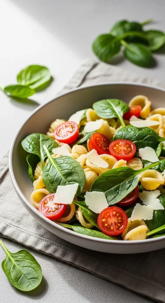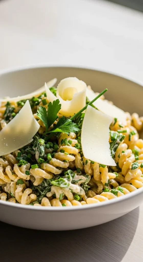 Serve in a large bowl with extra herbs. Add parmesan before serving. Works well for events. Pair with grilled foods. Finish with olive oil drizzle.
