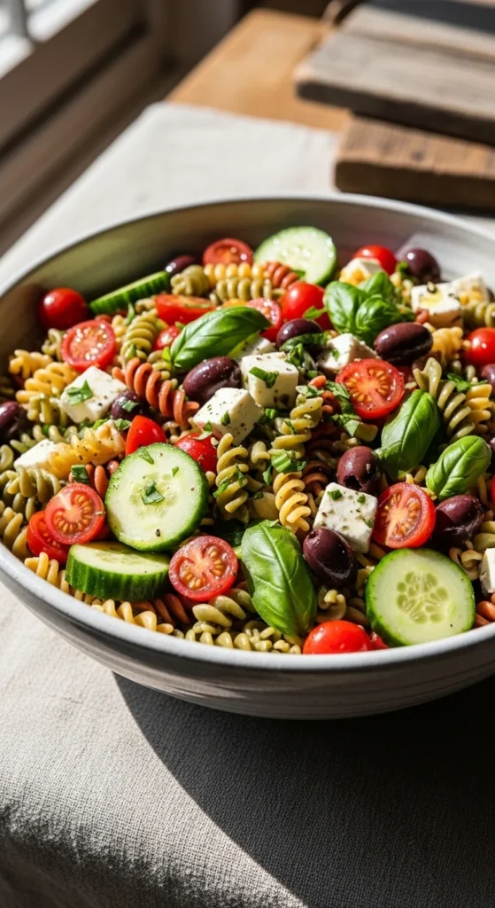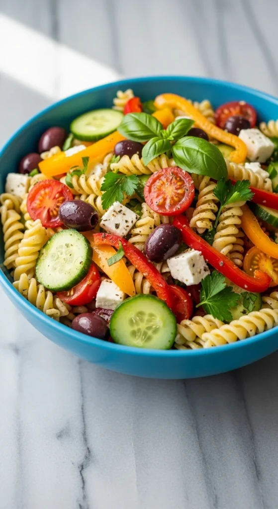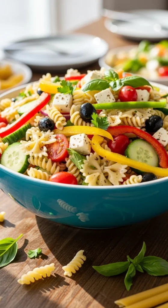 This pasta salad is designed for gatherings, offering balanced flavors, vibrant color, and easy scaling for larger groups.