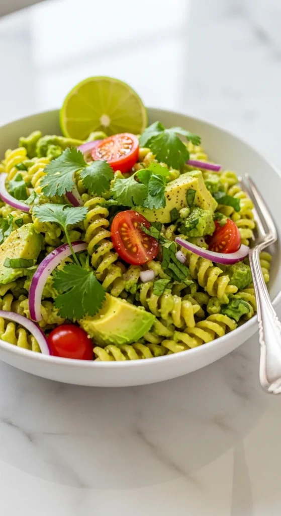 This avocado pasta salad is creamy without heavy ingredients, bringing a fresh texture and bright flavor that works beautifully for quick lunches and light dinners.