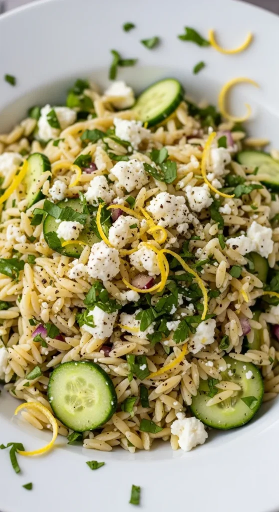 This lighter take uses delicate orzo pasta that absorbs the lemony dressing beautifully, making every bite feel fresh and balanced while still being filling enough for a full meal.