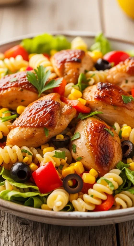 This version adds juicy grilled chicken, turning a simple side into a satisfying meal that still keeps that bright, citrusy flavor.