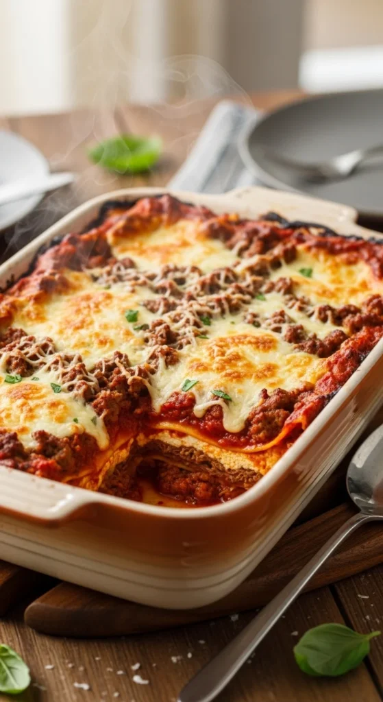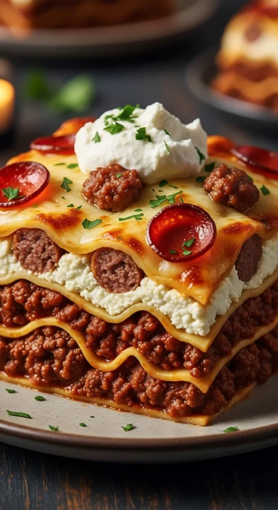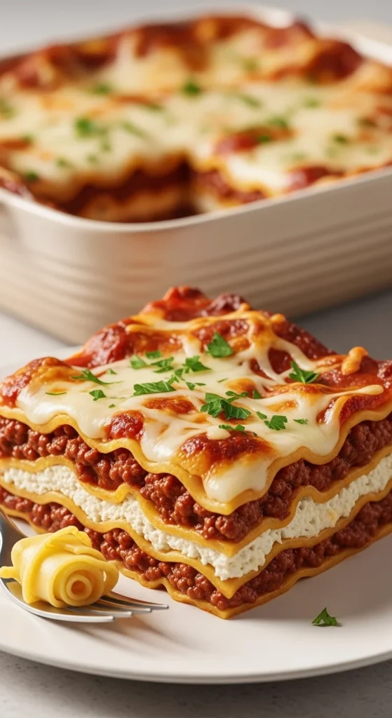 This classic beef and sausage lasagna is everything people love about homemade comfort food, with a slow-simmered meat sauce, creamy ricotta filling, stretchy mozzarella, and tender noodles stacked into a hearty baked dish that slices beautifully after resting, making it perfect for Sunday dinner, holiday meals, or any night when you want something rich, filling, and deeply satisfying from the first bite to the last.