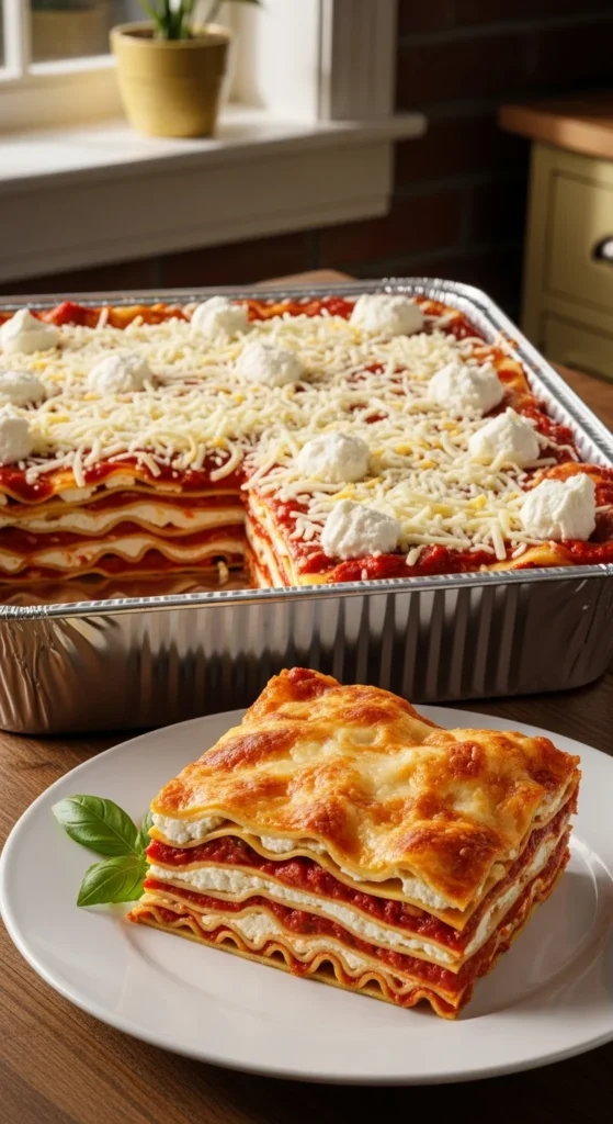This deep-dish lasagna is all about generous layers and extra height, packing more sauce, more cheese, and more noodles into a thicker pan for a dramatic baked dinner that looks impressive on the table and delivers that rich, hearty restaurant-style feel while still tasting homemade and wonderfully comforting.