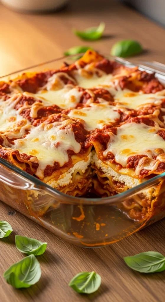 Serve each slice with extra Parmesan and chopped parsley on top. Garlic bread and a crisp salad make great side dishes. Fresh basil adds a nice pop of color if you have some on hand. For a cozy cold-weather dinner, pair it with roasted vegetables. Let the pan rest before cutting so the layers stay neat. Leftovers taste wonderful the next day.