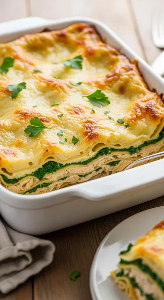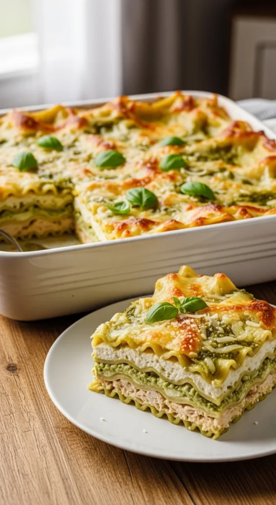 Top with chopped parsley or basil. This recipe pairs well with roasted tomatoes or a crisp salad. It’s a nice spring and summer lasagna option. The pesto flavor is rich, so serve with something fresh on the side. Small squares work well for lunch. Leftovers stay flavorful for days.