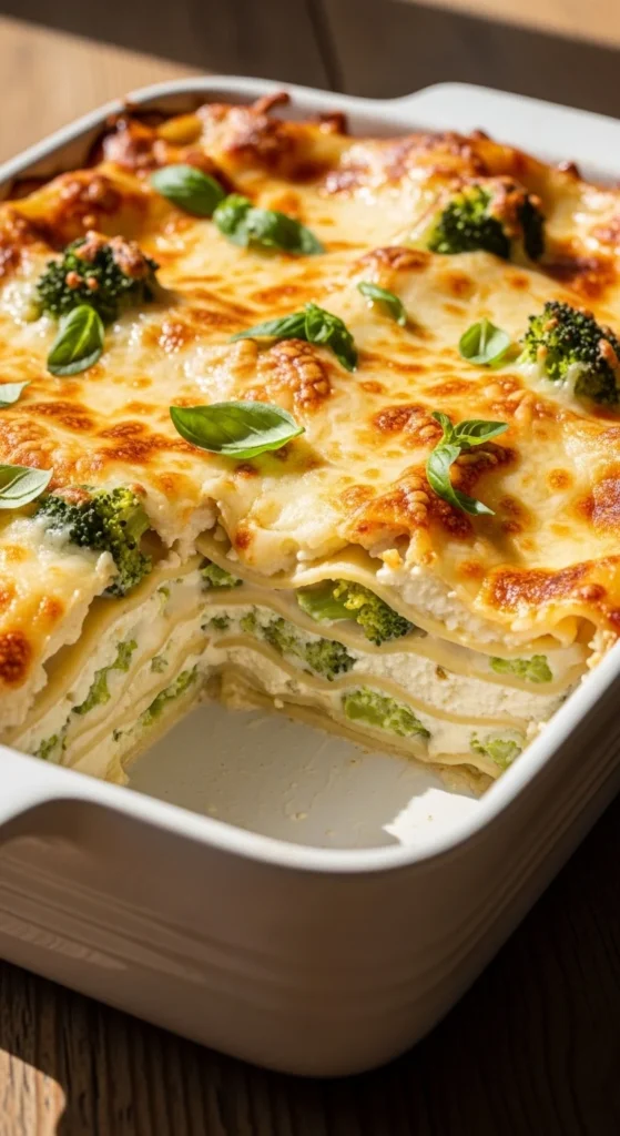 This broccoli Alfredo lasagna is creamy and cozy with soft broccoli tucked into a rich white sauce and layered with noodles and cheese, making it a comforting meatless dinner that still feels filling and familiar, especially for people who love creamy pasta bakes and want a lasagna with a softer, milder flavor profile.