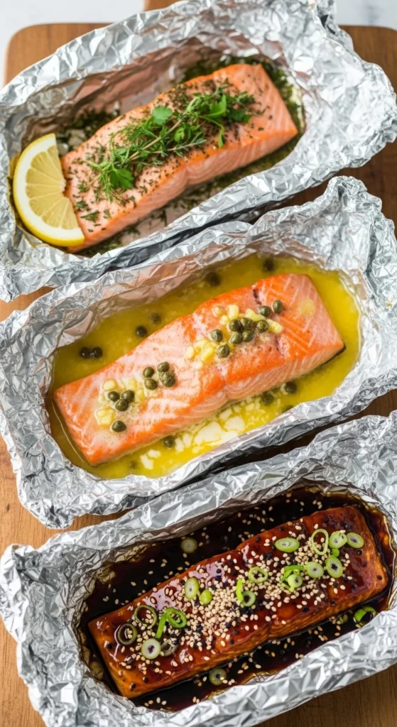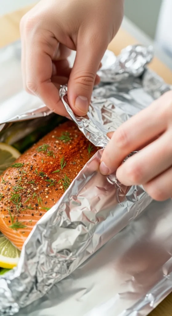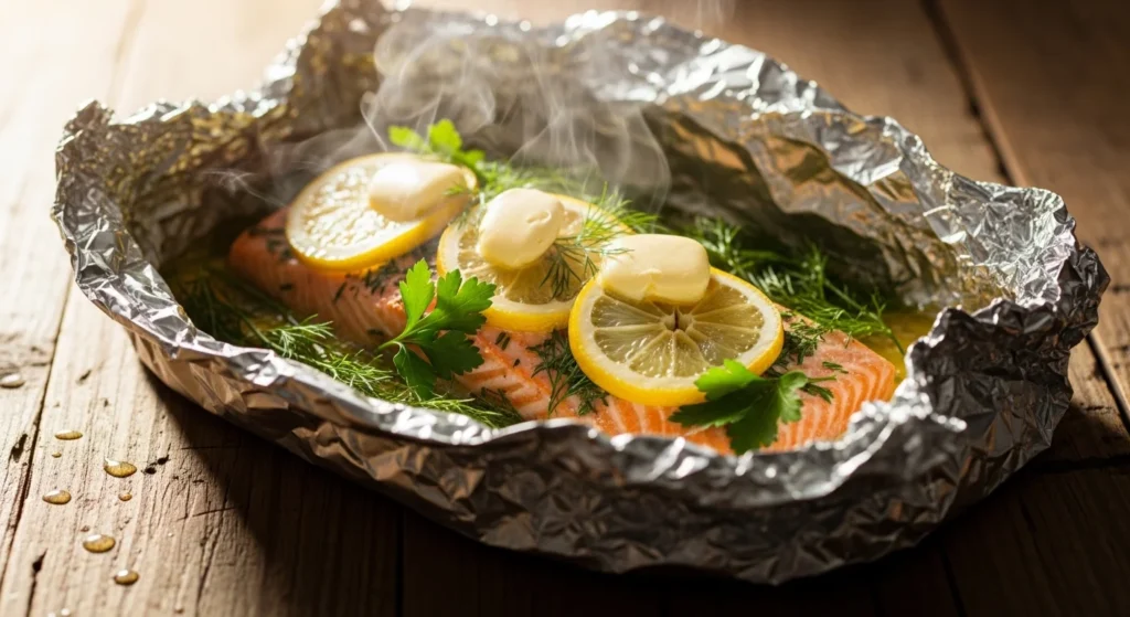 Foil packs (also called en papillote) are a game-changer for home cooking. They trap steam inside a sealed packet, gently cooking the salmon while locking in all its natural juices.