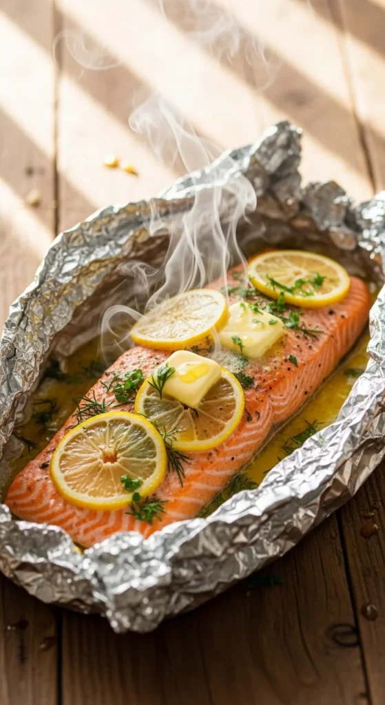 Imagine opening a steaming foil packet at dinner time and being hit with the aroma of buttery lemon, garlic, and perfectly tender salmon. No pans to scrub. No mess on the stove. Just juicy, flaky fish ready in minutes.
