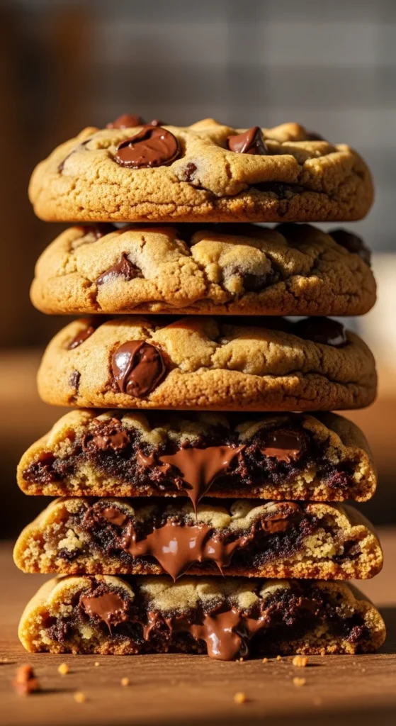 Browning butter transforms it into liquid gold — nutty, toffee-like, rich, and aromatic. When paired with dark brown sugar and pools of chopped chocolate, you get cookies with crispy golden edges, thick chewy centers, and deep caramel flavor that feels straight out of a bakery.