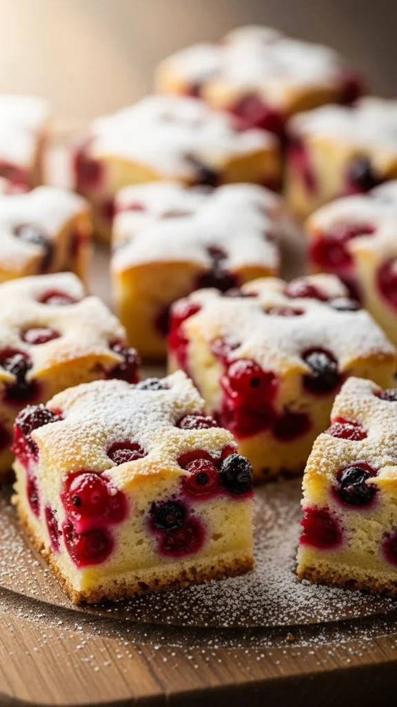 Currant squares are simple traybakes that feel perfect for sharing. The crumb is buttery. Currants add sweet bursts. They slice cleanly. Great for bake sales. Easy to pack and store.
