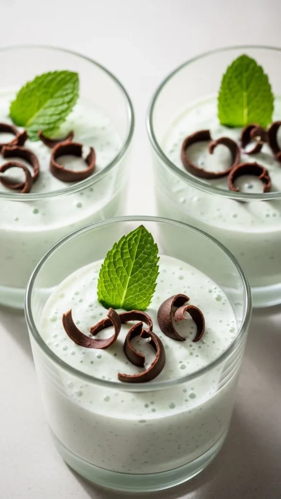 This pudding uses water and gelatin for a very light, chilled dessert that still tastes creamy with the right flavoring. Mint gives it a clean finish, and cocoa adds balance without heaviness. It’s simple to make ahead and serves nicely in small cups. Great for people who want something chilled and light. Top with a little chocolate for contrast.
