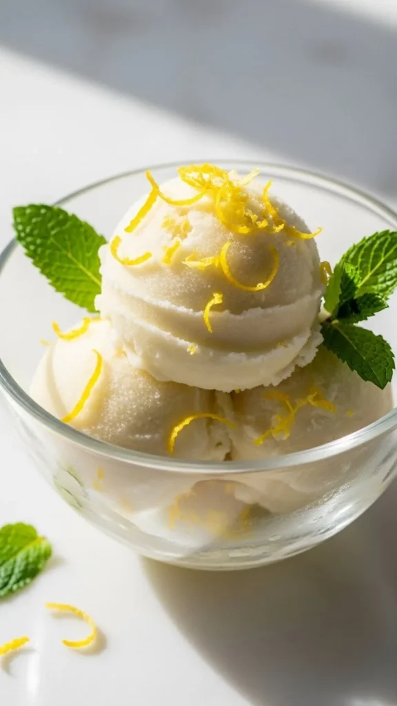 Mint and lemon are a refreshing duo that tastes like a fresh breeze after a rich meal. This sorbet is icy, bright, and easy to scoop, with a gentle mint finish that lingers lightly. It’s a great option when you want dessert without dairy, and it’s perfect for warm evenings. The lemon keeps it lively, while mint smooths out the tartness. Serve it in small bowls or even in lemon cups for a fun touch.