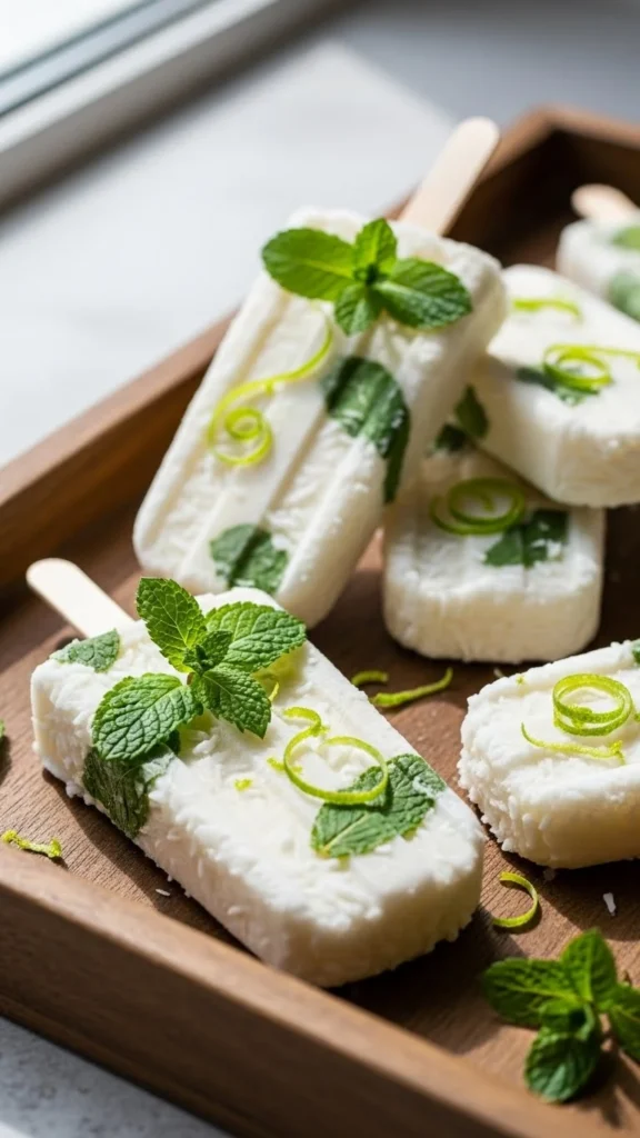 Coconut milk makes popsicles creamy without feeling heavy, and mint-lime keeps everything bright and refreshing. These are perfect after spicy or rich dinners. They freeze beautifully and look lovely with simple garnish. The flavor is cool, tropical, and clean. Great for warm evenings and family dinners.