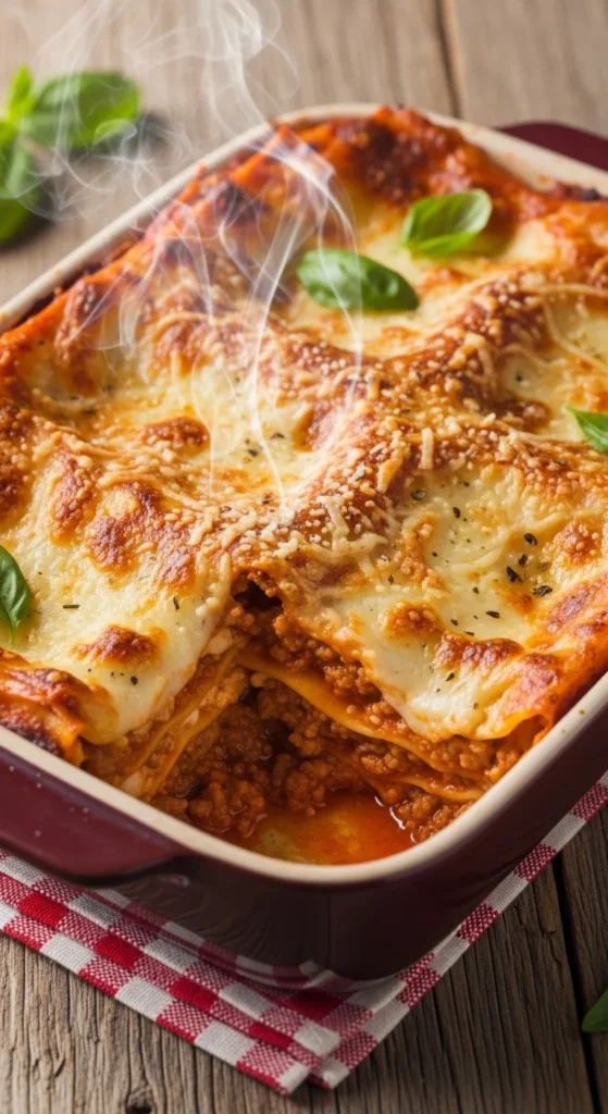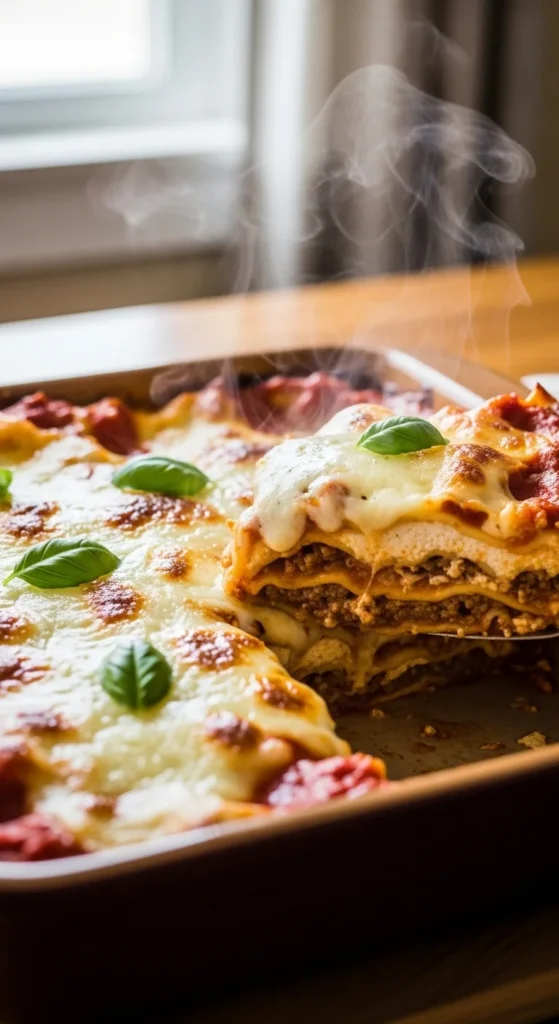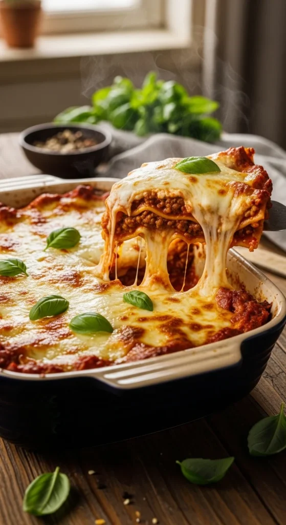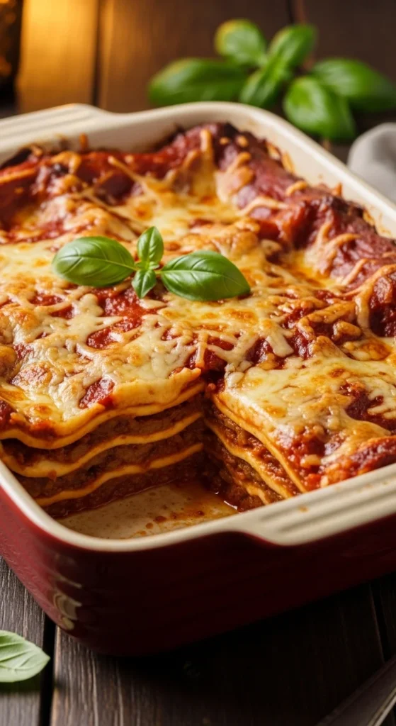 This lasagna blends creamy tomato sauce with fresh basil for a smooth, comforting flavor. The sausage adds richness while the sauce stays silky and slightly sweet. It feels classic and cozy, perfect for family dinners.
