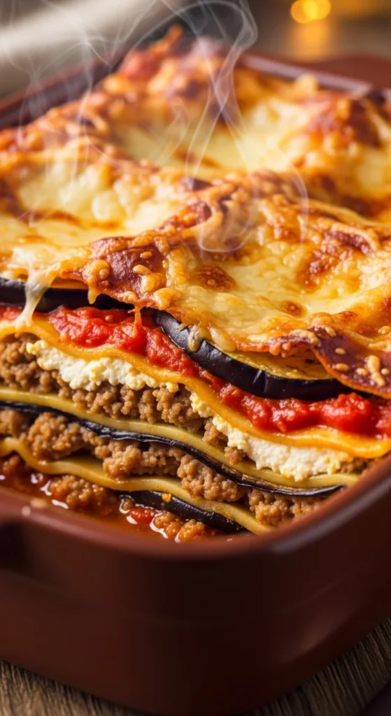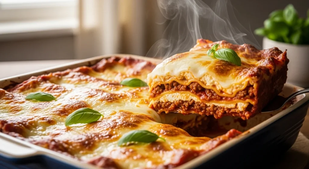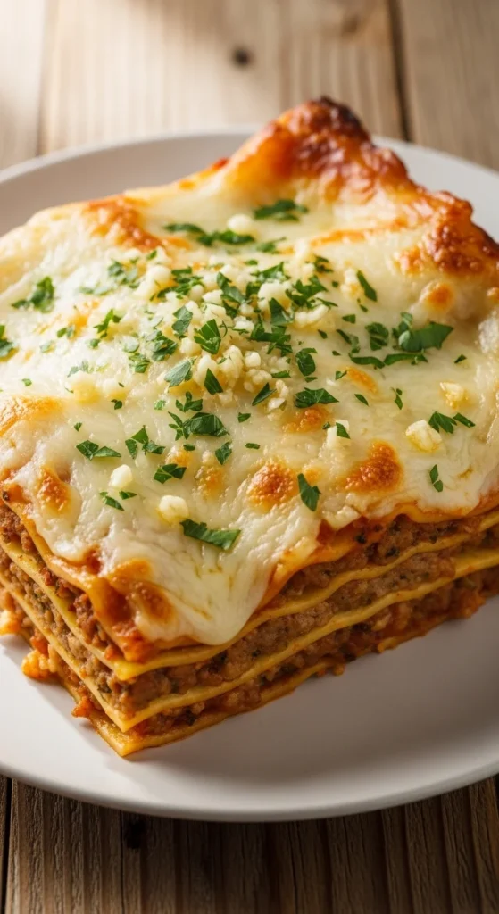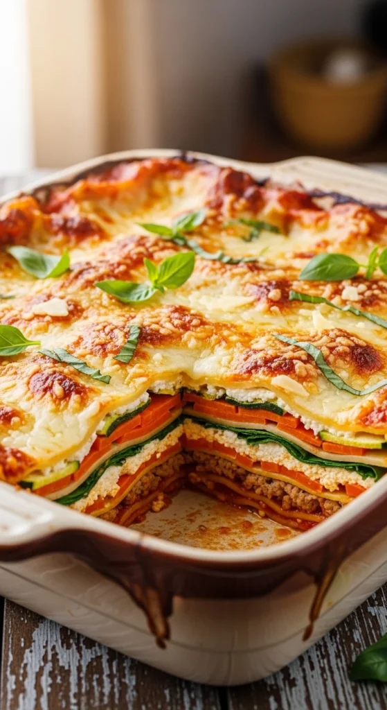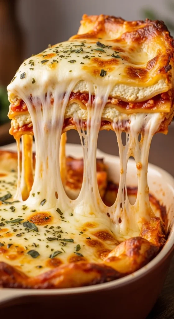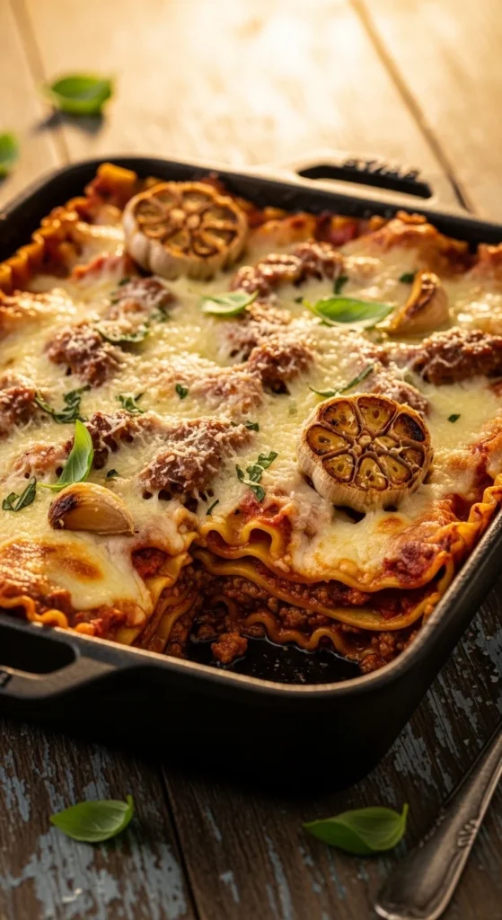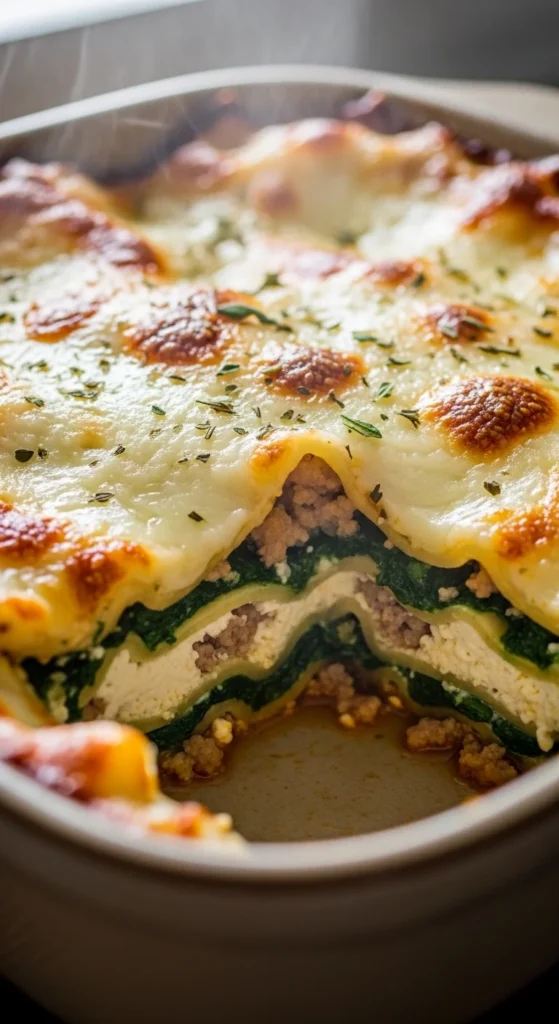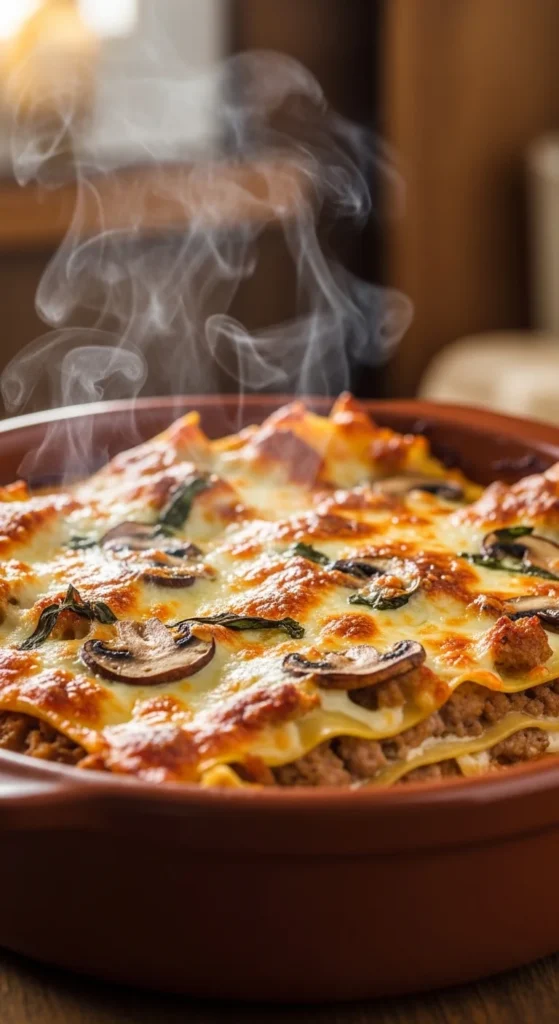 This lasagna replaces some noodles with roasted eggplant, making it slightly lighter but still rich in flavor. The eggplant absorbs the sauce beautifully while sausage adds bold depth. It’s soft, hearty, and full of layered comfort. A great option for adding more vegetables without losing taste.