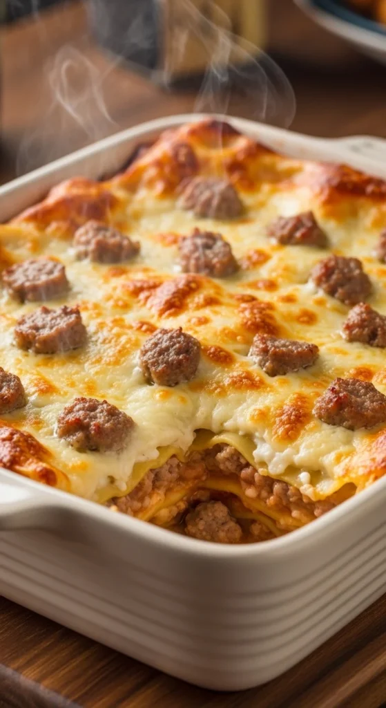 This recipe combines sausage and beef for a deep, meaty flavor. The sauce is thick and rich, layered with creamy cheese and pasta that holds everything together beautifully.