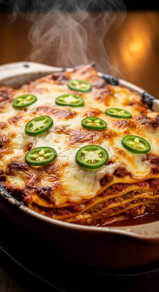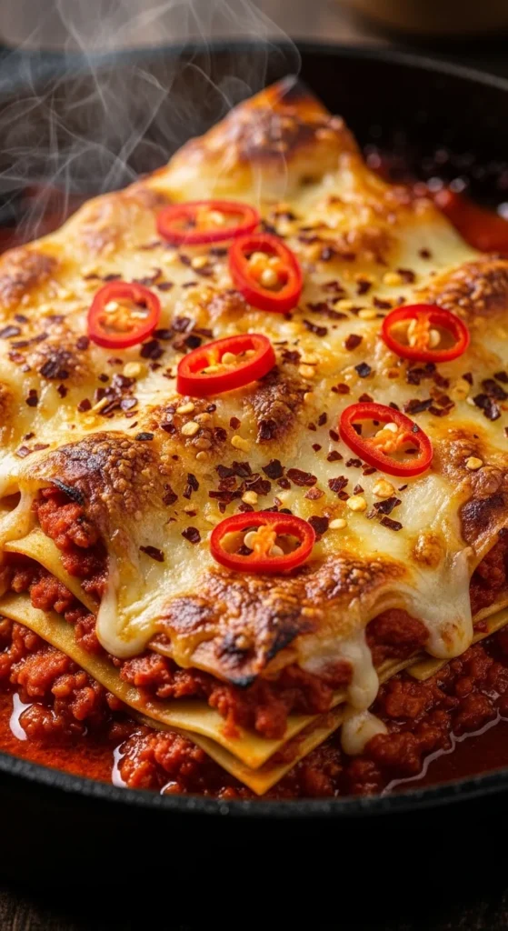 This lasagna adds heat from jalapeños that blend with spicy sausage for a bold kick. The cheese softens the spice while keeping flavor strong and exciting. It’s perfect for those who enjoy a little fire in their meals. Every layer has a warm, spicy depth.